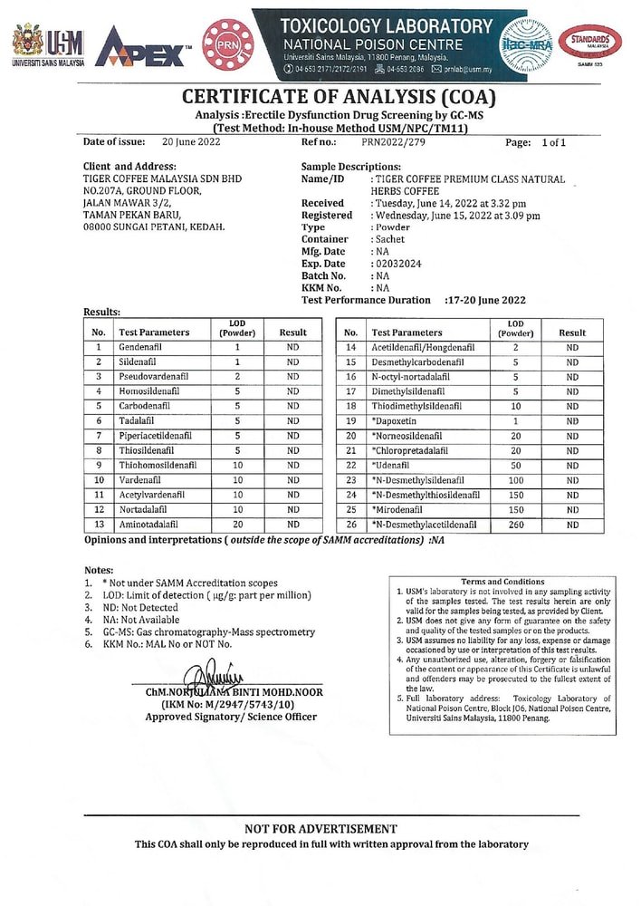 A: Tiger Coffee is suitable for most adult men. However, if you have a specific medical history or medical condition, please consult your physician before use.